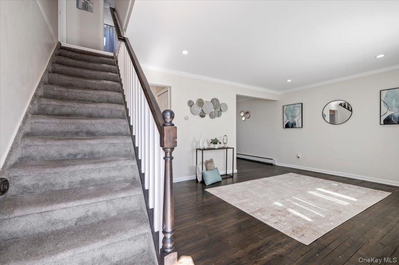 This meticulously remodeled cape offers a bright, inviting layout with generous updates and practical spaces. The two-level layout has 2 bedrooms and a full bath on each floor. The eat-in kitchen has a side entry door, ideal for easy access to the backyard. This well-appointed home offers an efficient hall closet that includes a laundry hook-up. This home features a refreshed front with new pavers that create a welcoming entrance and practical, low-maintenance hardscaping. A stately portico with supporting columns provides covered curb appeal and the expansive driveway offers ample off-street parking. Conveniently located close to the LIRR, shopping outlets, and schools Schedule a showing to experience its welcoming layout.